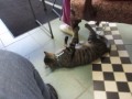 I'm a big boy who is very outgoing and friendly, love to have my belly rubbed, back scratched and will lay on your lap. I am also very active, playful and silly at times. I do like to play in my water and give my toys baths. I get along great with my foster mom's adult kitties. Since I am still young I will need to be taught the house rules.