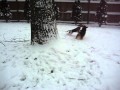 Marley is very active, energetic and playful. He loves his toys and can't get enough of playing with other dogs. I would recommend he go to a home with other energetic dogs who can keep up with him, as older or more timid dogs might be overwhelmed. He is still very much a puppy and will need lots of exercise and basic obedience training (we're working on "no" and "leave it" right now), but he is quite well house broken and lets you know when he needs to go out. At his old house he would bring his leash to his mom when he wanted to go outside so he's quite smart! Here he whines at the door. We have begun crate-training with Marley. He still barks for a while when he first goes in, but we are working on it.