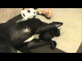 Update - 2/1/12 - Rebel was a fantastic guest in my home over the weekend. He is completely house trained. He was alert and interested in many "new" sounds. He settled easily and enjoyed being right next to me as I moved from room to room in the house. He enjoyed being on a leash and outside for potty and exercise breaks. He slept very soundly the second night. He was not crated and had no trouble with the barricade in the kitchen area. He responded with curiousity as new people entered my home and when told it was "ok" he perked up and was comfortable with the energy level of the busy household. He would not do stairs yet. He whined a bit because we were outside his sight. With encouragement and more time - I am confident he would have tried the stairs. No need to rush all the new experiences. He really enjoyed human affection. He allowed complete body hugs from me (did not try this with children yet). He enjoyed belly rubs. He is recovering from neuter and tail dock so wore an e-collar for most of his visit and tolerated this very well. Although we suspect he is new to vet care, he allowed the vet techs and vet to do what they need to do and didn't fuss. What a great boy! He took his medicine well, with a bit of cheese wrap. Once he gets his stitches out of his tail - in about 10 days, he will be ready for his new fur-ever family. You can come by the Shelter and meet him to see if he is a good fit for your family. He is a charmer and worth a meet and greet. He needs to get settled in his fur-ever home/ He was just starting to figure out his toys. He probably never had toys before so he is a bit of toy hoarder and will have to learn to play with them.