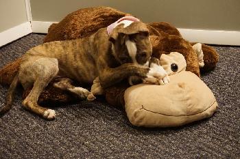 Little Armani was surrendered to veterinarian with two broken knees and growth plates. The surgery was too expensive for the owners. Rose's Rescue took this little girl in and thanks to the kindness of Dr Thorsen of the Boston Hts Veterinary Hospital, was able to get her surgery done. Speedy recovery to a sweet little girl with a rough start to her life!